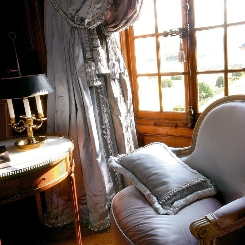 Questa frangia Les Marquises di Houlès è composta da una treccia piatta decorata con perle ricoperte da fili dall'aspetto setoso.