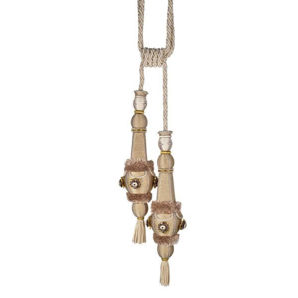Immaginata da Houlès, la copertura con 2 nappe Volanges si iscrive in un registro classico ornamentale, dove ogni elemento è pensato come un dettaglio decorativo a sé stante. Questa passamaneria affascina per la ricchezza dei suoi dettagli, esaltati da un gioco di trame, lucentezza e colori sorprendenti. Houlès perpetua qui una tradizione decorativa giocando sull'equilibrio tra opulenza e delicatezza.