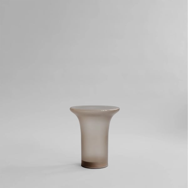 Con la sua silhouette curva, il tavolino Trumpet low Glass impone una presenza discreta. Realizzato in vetro soffiato a bocca, riprende la forma di una tromba stilizzata, la cui base stretta si allarga in un piano liscio. La sua superficie riflette la luce e compone un sottile gioco di bagliori. Firmato 101 Copenhagen, incarna un equilibrio tra leggerezza visiva e struttura controllata.