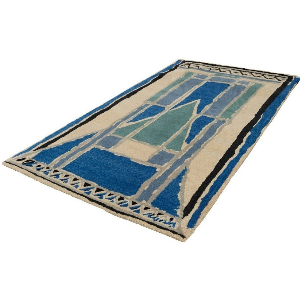 Questo tappeto utilizza un disegno attribuito al pittore Duncan Grant o Frederick Etchells, anch'egli membro del laboratorio. Il disegno è caratteristico delle opere di questo collettivo e presenta forme geometriche disegnate a mano libera, fregi e margini oltre a un patchwork dove il colore principale è scomposto in sfumature. Christopher Farr Editions ripristina l'accuratezza di questo lavoro grazie a una tintura artigianale e un tufting a mano.