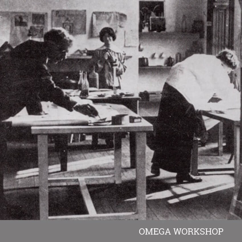 Omega Workshop era un'azienda di arti applicate fondata a Londra nel 1913 dal pittore e critico d'arte Roger Fry. Strettamente legato ad artisti del movimento Bloomsbury come Duncan Grant o Vanessa Bell, che lo affiancano in questa breve avventura, il gruppo produce ceramiche, mobili, tappeti e tessuti.
