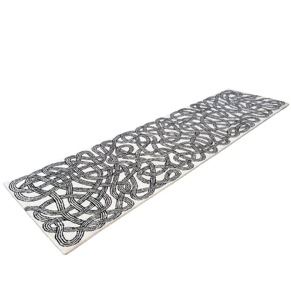 Figura di spicco nel design tessile, Anni Albers è stata allieva dell'essenziale Gunta Stölzl, maestro di laboratorio al Bauhaus, prima di diventare lei stessa insegnante. Nutrita di arte e architettura contemporanea, esperta di tessitura, sperimenta metodi e materiali non convenzionali. Mentre insegnava al Black Mountain College negli Stati Uniti, dopo la chiusura del Bauhaus, ha prodotto vere e proprie opere tessili unendo tradizioni, design all'avanguardia e tecniche d'avanguardia, contribuendo a gettare le basi del design tessile così come lo conosciamo oggi. Prezioso e ipnotico, il tappeto Runner è tratto da un disegno di runner realizzato dall'artista nel 1959 e sviluppato in collaborazione con la Josef and Anni Albers Foundation.