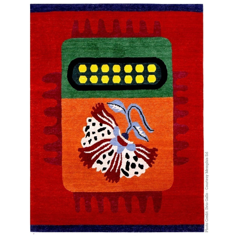 Creato nel 2003 dall'artista Nathalie du Pasquier, figura emblematica del gruppo di designer Memphis fino al 1986, il tappeto NDP2 utilizza lo stesso linguaggio giocoso e colorato stabilito da questo movimento. Un fiore stilizzato domina aree piatte di colori saturi punteggiate da pois e forme geometriche che sostengono l'aspetto decorativo e vivace di questo disegno. Realizzato artigianalmente in Nepal con la tecnica Uma, questo modello è prodotto in serie limitata firmata dall'artista.