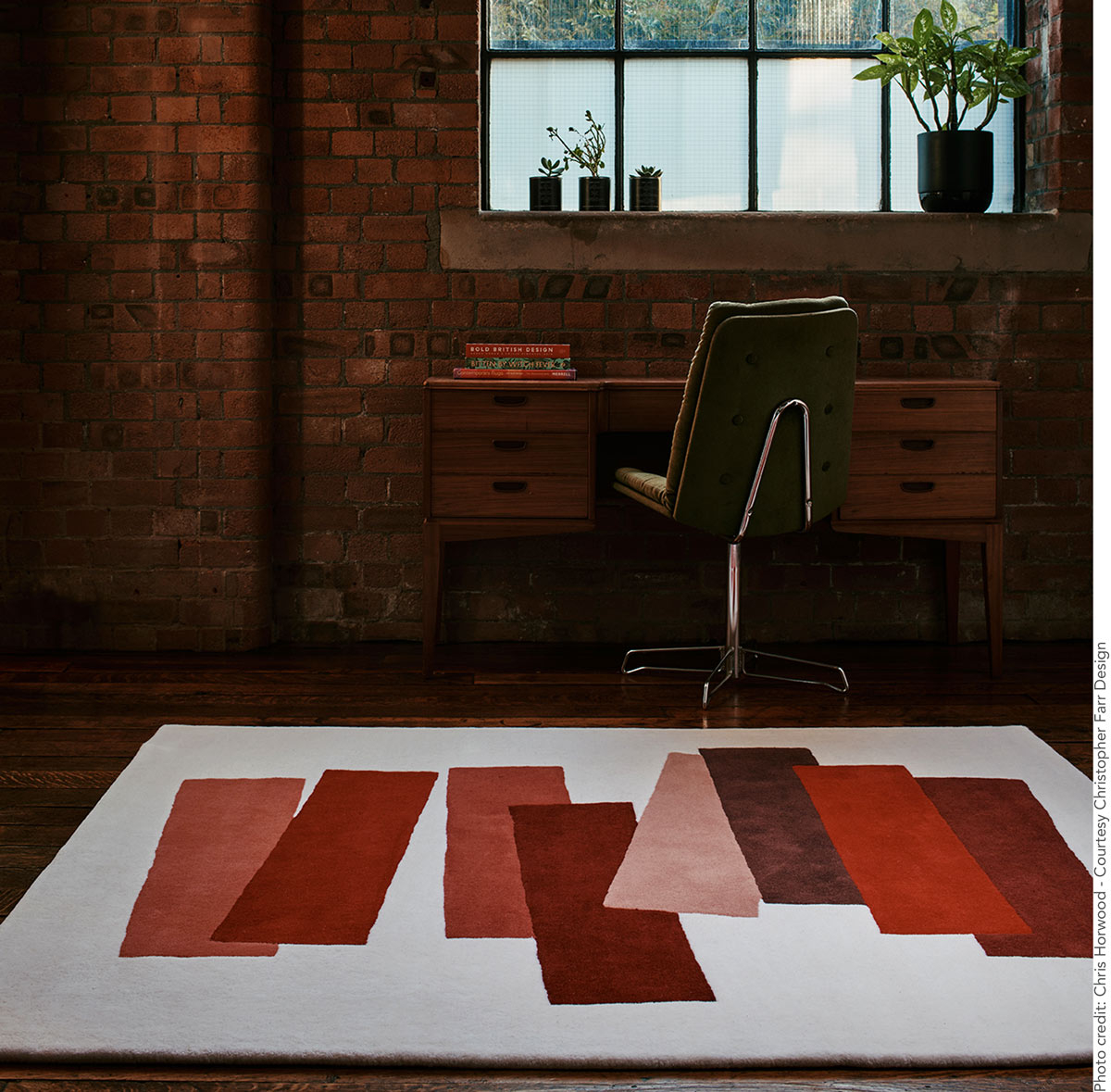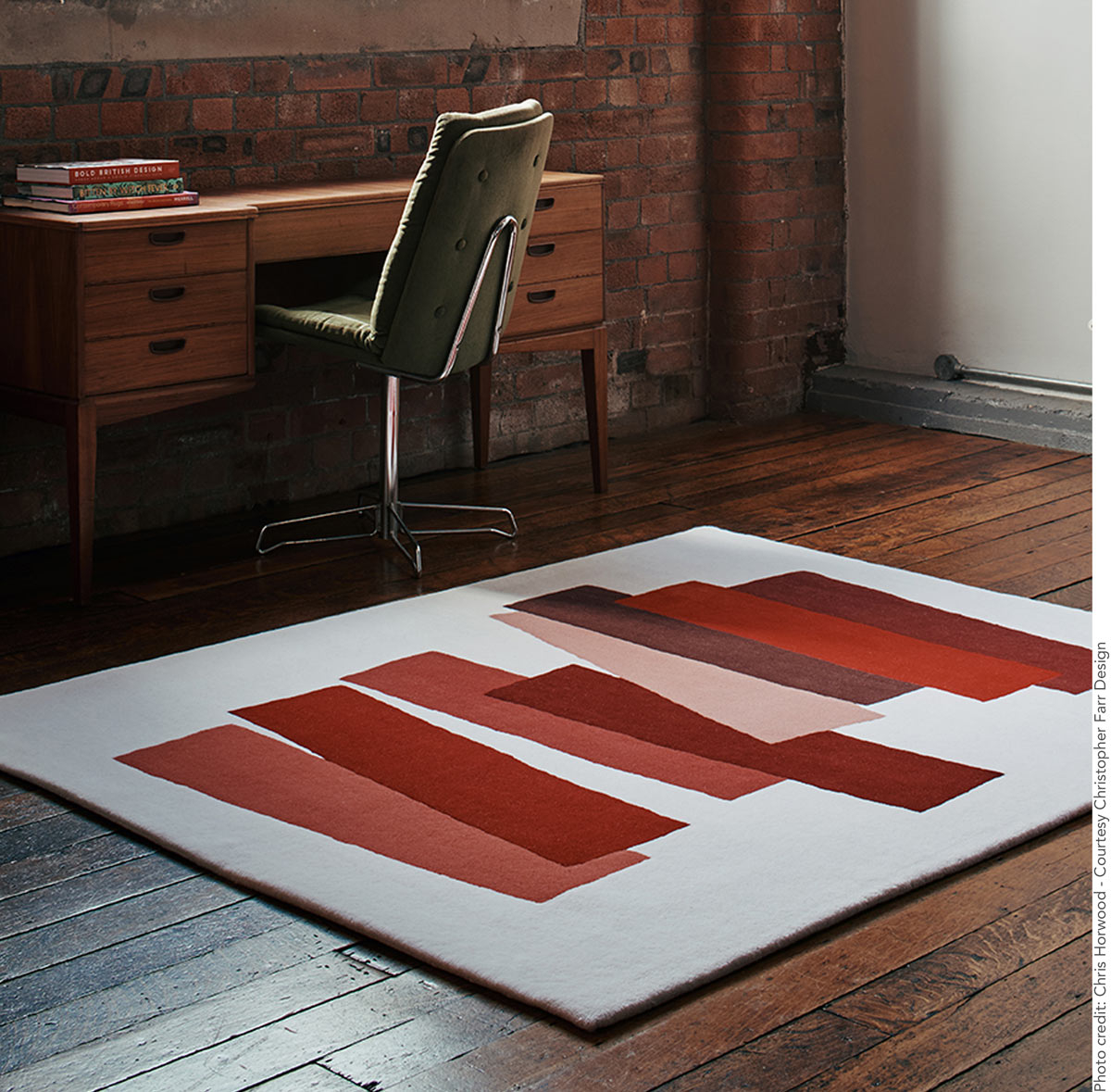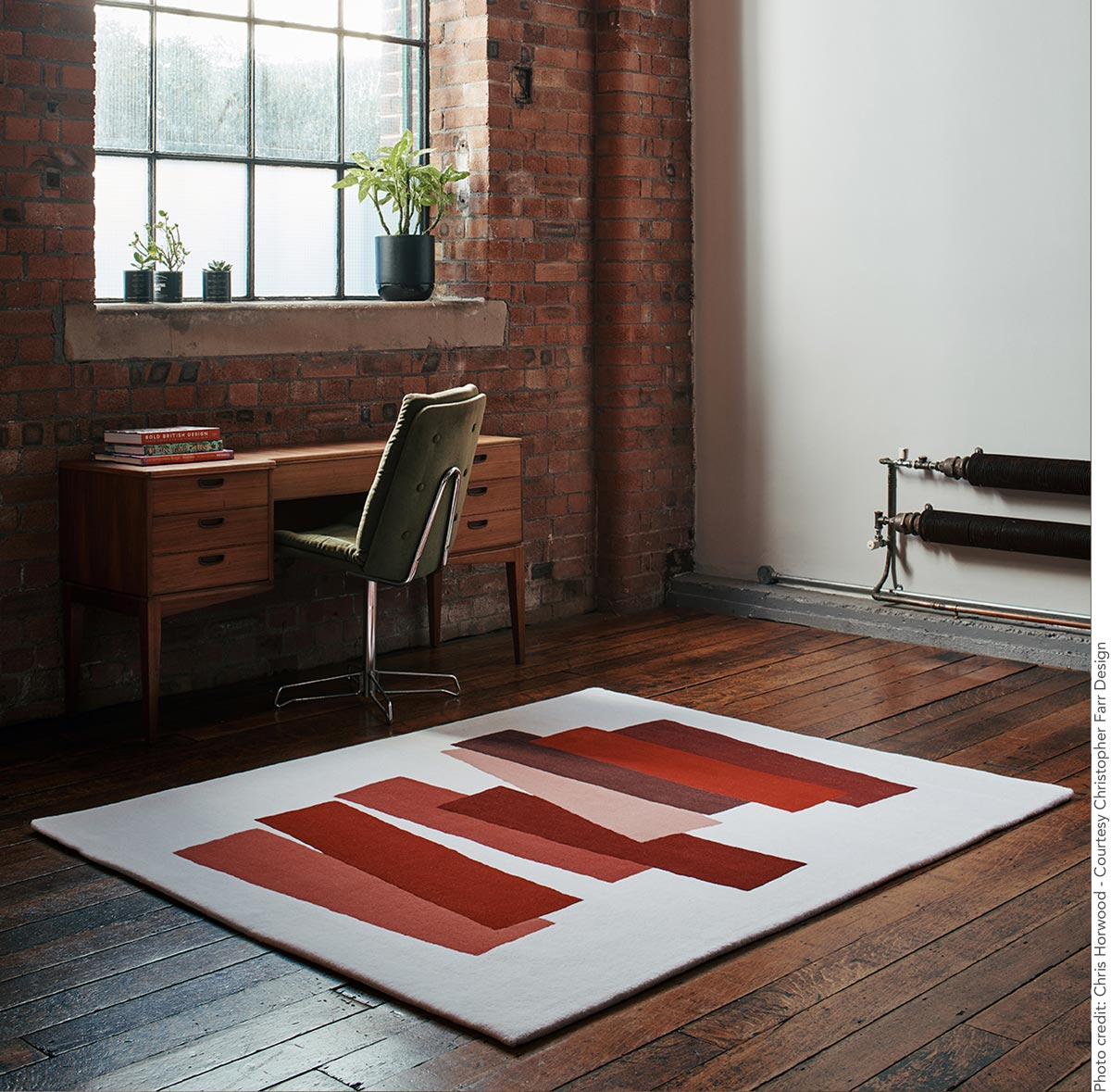 Pittore, insegnante e teorico dell'arte, maestro della scuola Bauhaus, Josef Albers era famoso per le sue esplorazioni sul colore e rivoluzionò l'arte della vista. Quando il Bauhaus chiuse nel 1933, continuò la sua carriera di insegnante, in particolare a Yale, svolgendo al contempo un lavoro artistico personale. Nel 1963 lanciò nel mondo quella che sarebbe diventata l'esplorazione più influente dell'arte, della scienza, della psicologia e della magia del colore. Il tappeto, The Many Faces of Red, illustra i suoi esperimenti sull'interazione dei colori tra loro e sulle variazioni della stessa tonalità. Quest'opera è riprodotta fedelmente con fili di lana tinti a mano dalle edizioni Christopher Farr in consultazione con la Joseph and Anni Albers Foundation.