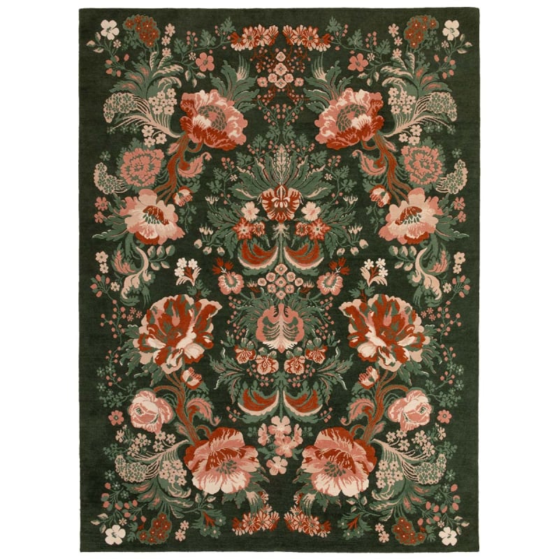 Il tappeto Chedigny offre un impressionante motivo vegetale costruito in simmetria in colori profondi e contemporanei. Caratterizzato da un leggero rilievo, è annodato a mano in lana neozelandese. Questa favolosa creazione floreale è stata progettata dai designer della Maison Quenin.
