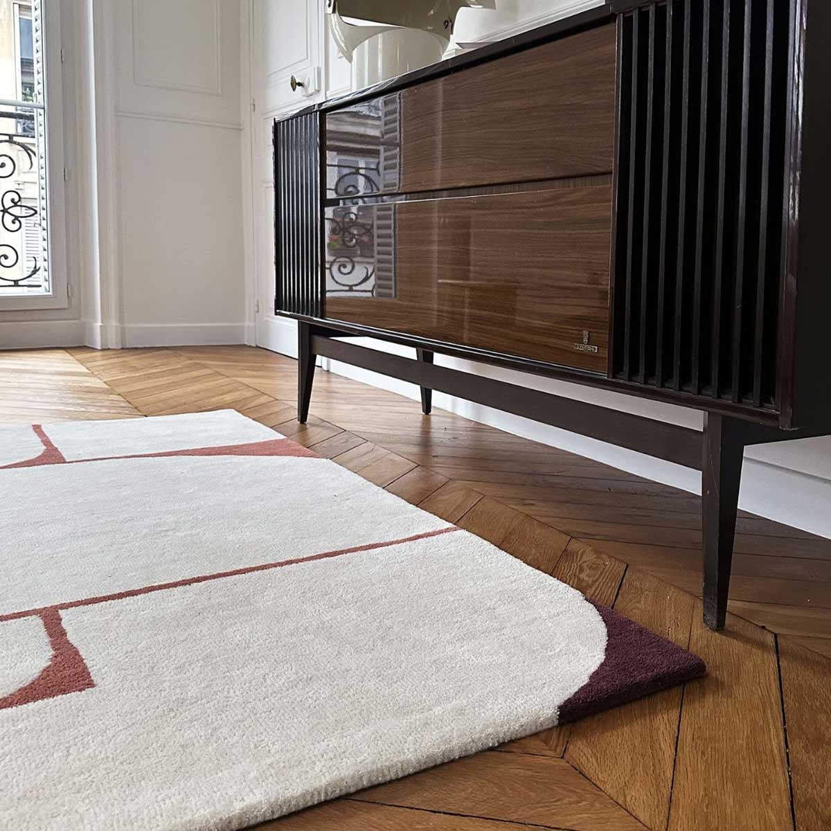 Inno allo splendore della geometria, Binibeca affascina per l'armonia dei contorni dei suoi disegni arrotondati e spigolosi. Questo tappeto firmato Edito si arricchisce con la trapuntatura a mano di fibre di lana della Nuova Zelanda. Sublima l'interno con un tocco di contemporaneità e accarezza i passi con la sua texture vellutata.