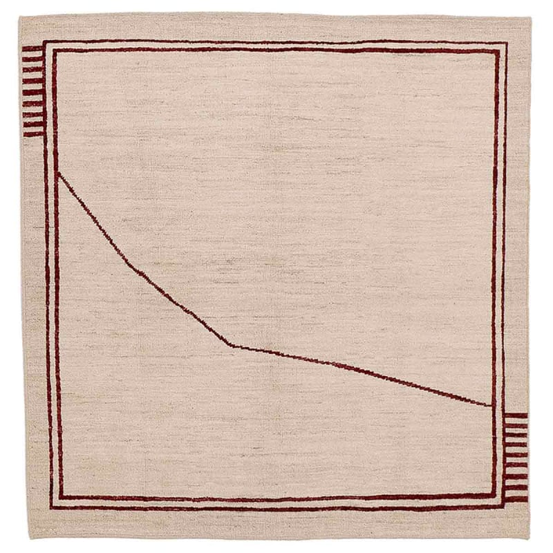 Il tappeto Aries presenta un motivo astratto che evoca la semplicità di un gesto spontaneo. Una linea irregolare attraversa lo spazio, tracciata da un tratto ripetuto e istintivo. La cornice asimmetrica e i piccoli segni laterali modificano la struttura e impongono un ritmo silenzioso alla composizione. Annodato a mano in lana, questo modello di Christopher Farr mette in risalto la ricchezza del disegno.