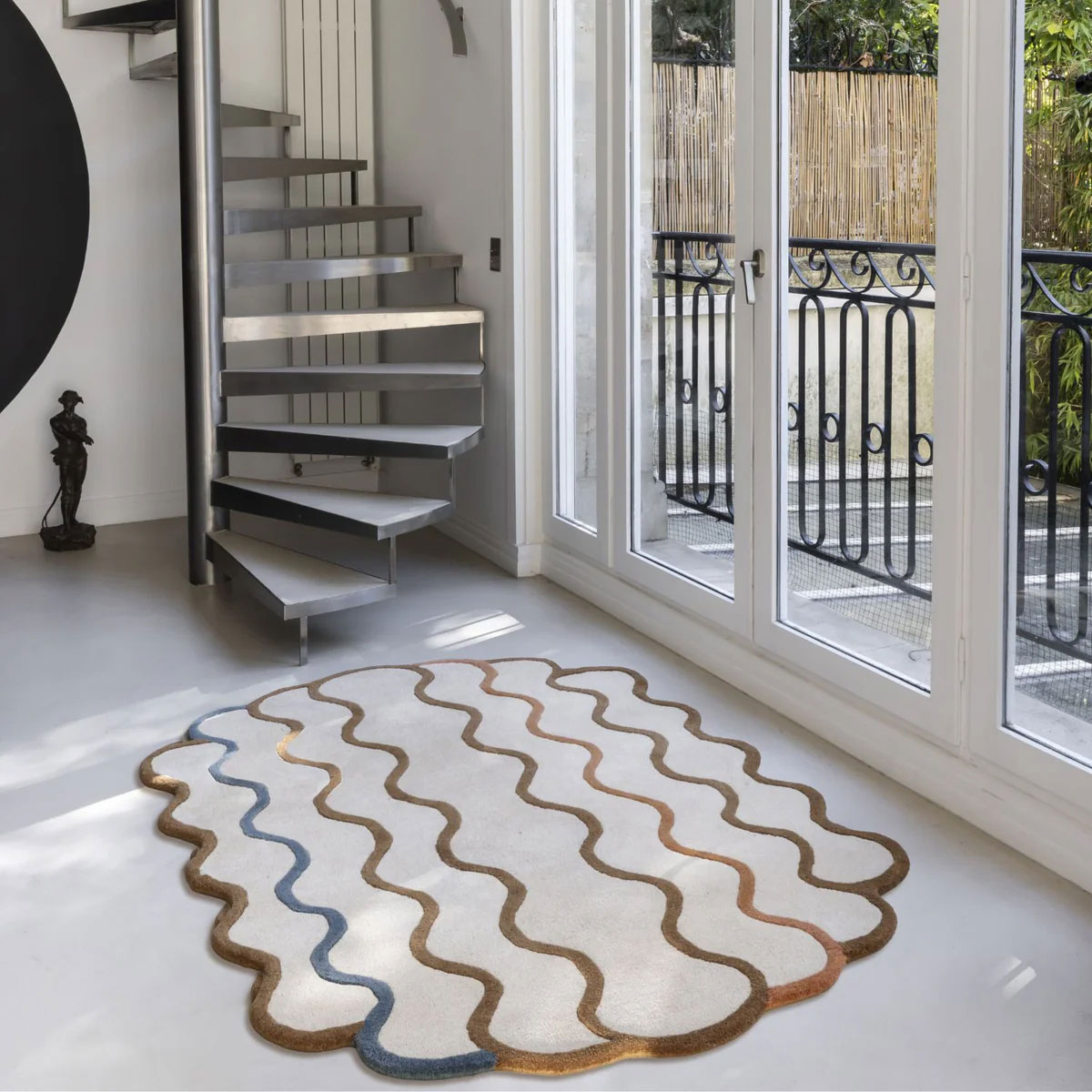 Edito firma il tappeto Coquillage, il cui disegno ondulato riflette la dolcezza di una riva e l'eco fluida di un'onda. La forma libera evoca una silhouette marina, tra astrazione e memoria organica. Il suo tracciato sinuoso, contemporaneo e sensoriale, accentua l'impressione di movimento. Realizzato interamente in lana tuftata, beneficia di un'eccellente resistenza e di un comfort termico naturale.