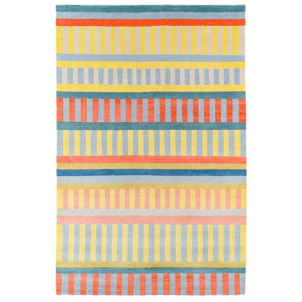 Rakki immagina il tappeto Joanna come un intreccio di ritmi grafici e morbidezza minerale. Le righe verticali si alternano in sequenze che compongono un motivo geometrico strutturato e dinamico. Annodato a mano in Nepal, questo modello è realizzato in pura lana proveniente dagli altipiani tibetani. Il materiale denso e vibrante fa affiorare ogni striscia con un'intensità sfumata.