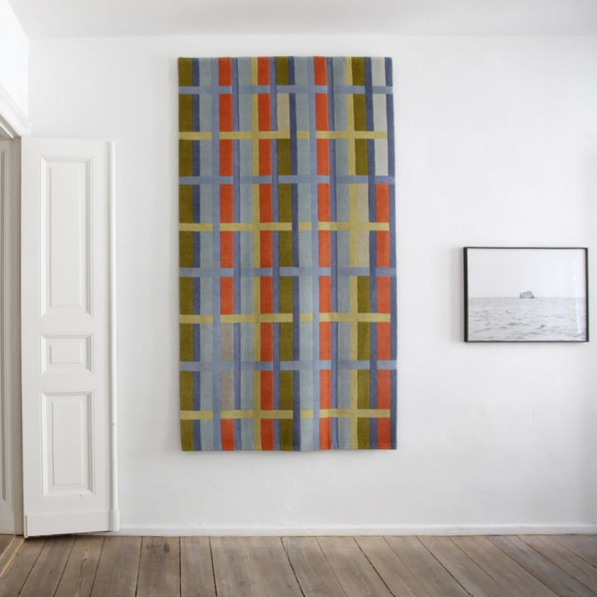 Con il tappeto Max, Rakki rivela una composizione vibrante, in cui la disposizione delle forme traccia un ritmo ottico. Il motivo geometrico gioca con le righe incrociate, variando in larghezza per disegnare tessere in movimento. Ogni pezzo è annodato a mano in Nepal con una cura eccezionale. Tessuto in pura lana proveniente dagli altipiani tibetani, la sua superficie rivela una trama densa e vivace.