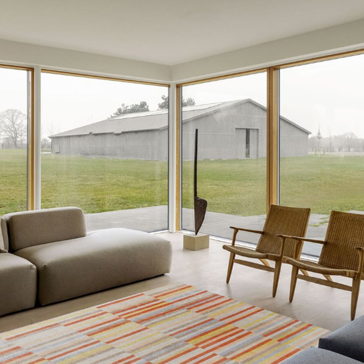 Rakki firma con il Tibet 01 un tappeto dal design vibrante, composto da sottili strisce verticali, giustapposte. Ogni linea prende vita in un gioco di ripetizioni irregolari che rivela una geometria in movimento. Annodato a mano in Nepal, combina la morbidezza della lana, la lucentezza della seta cinese e la trama dell'ortica. Questa tessitura artigianale conferisce una profondità delicata, quasi vibrante.