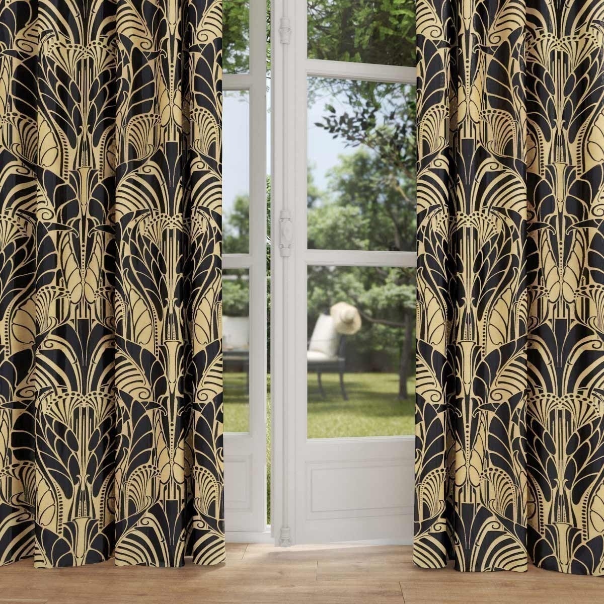 Creato come damasco da Maurice Dufrène nel 1911, il motivo in rilievo del tessuto Vitrail è stato poi adattato in un broccatello. È composto da elementi vegetali dai tratti tondeggianti in stile prevalentemente liberty. Per bilanciare il tutto, Tassinari & Chatel opta per simmetrie e riflessi cangianti ispirati all'Art Déco.