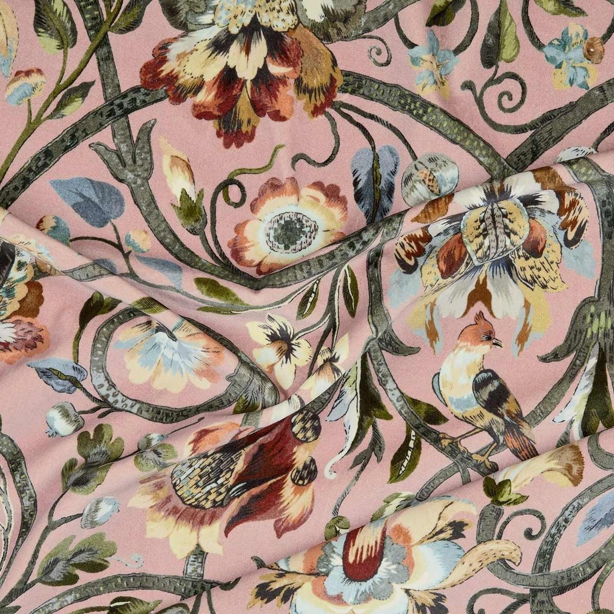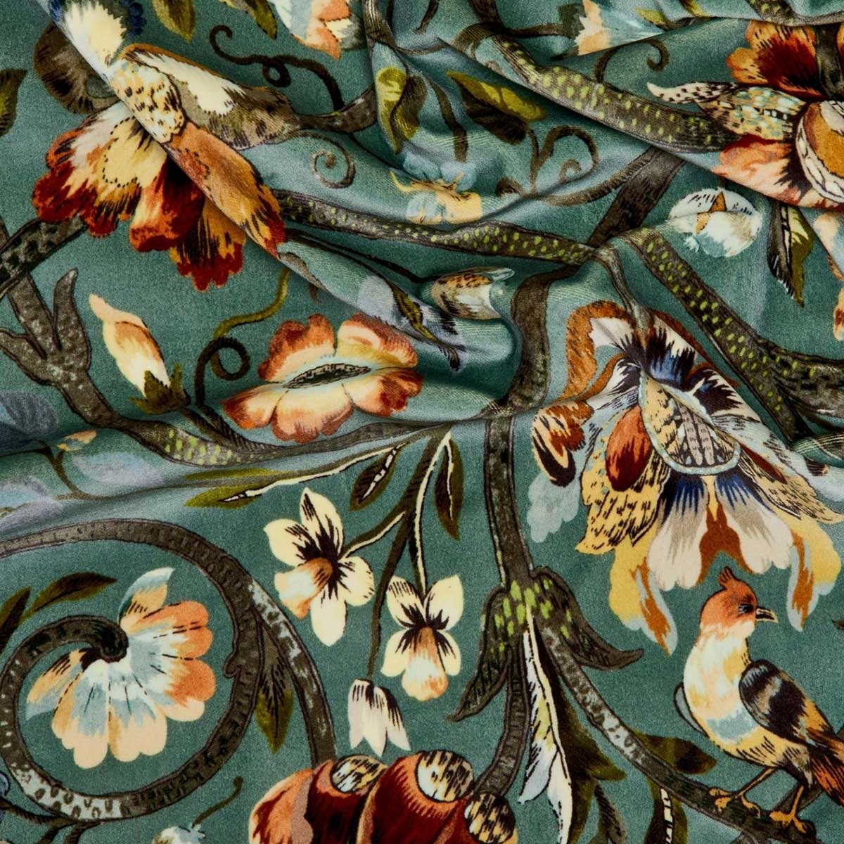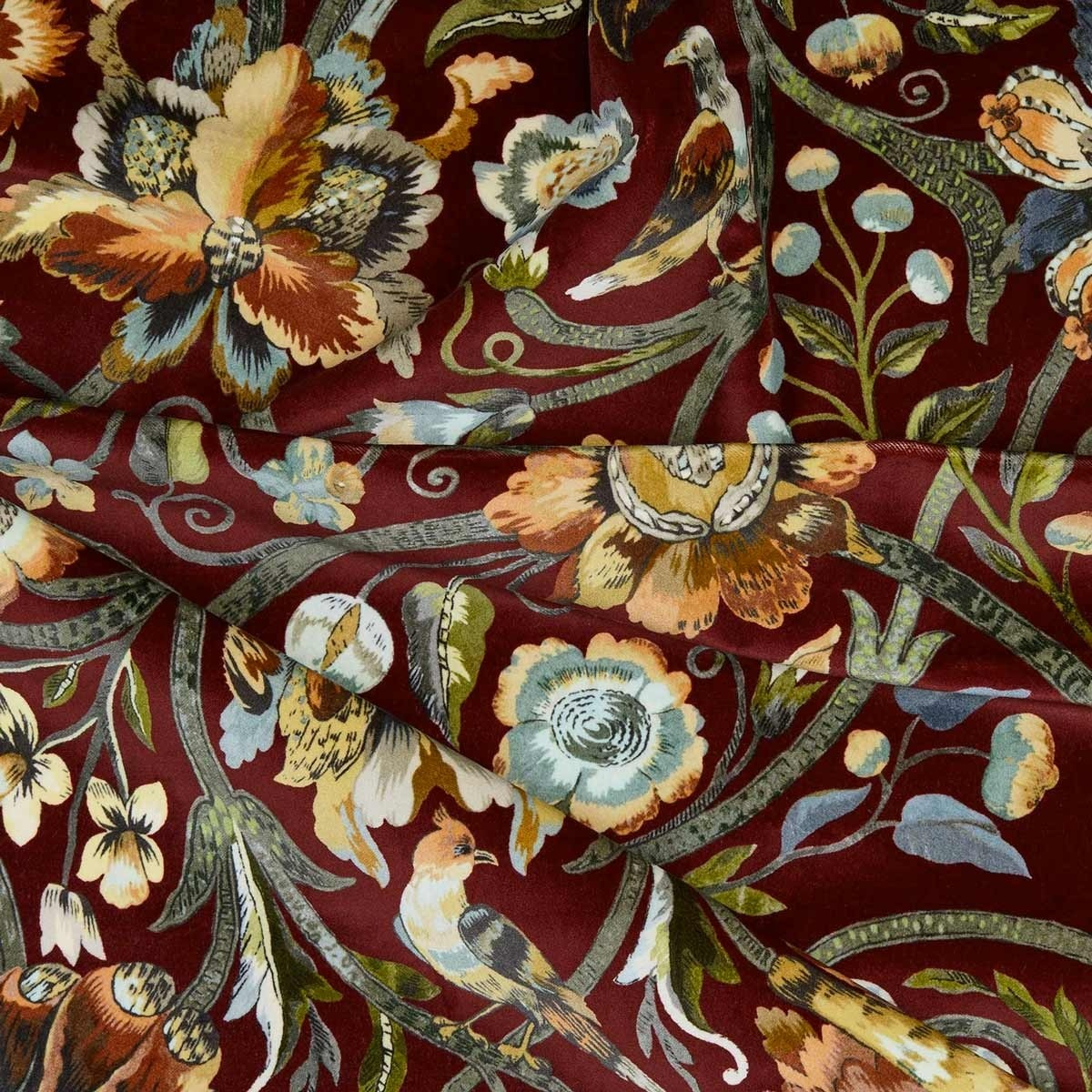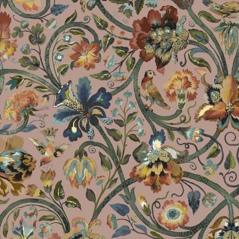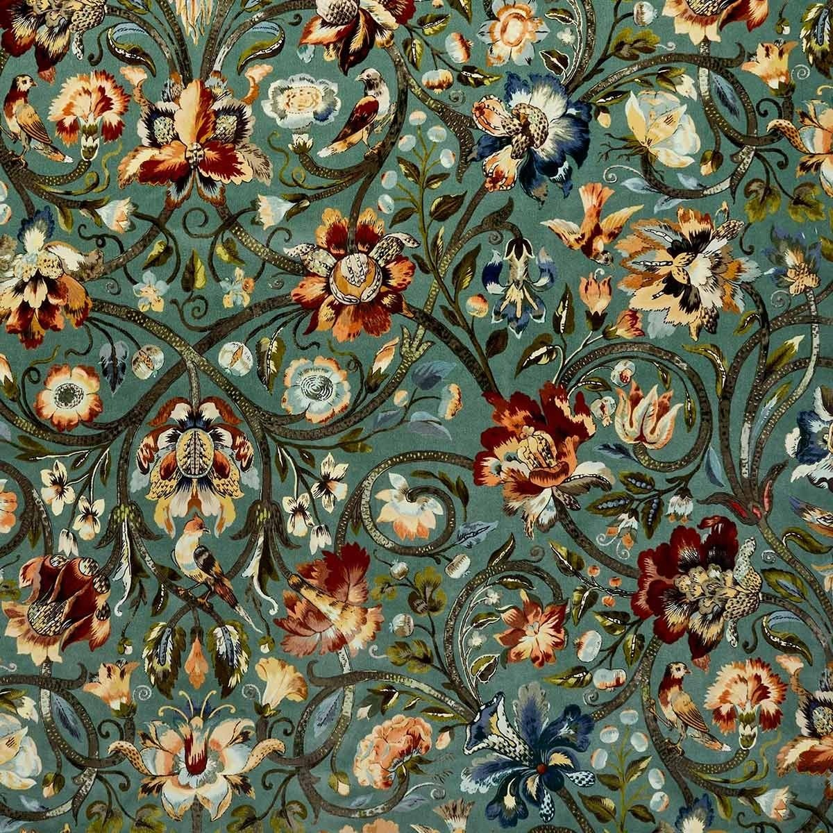Gli uccelli svolazzano felici tra le bacche e i fiori, oppure nidificano sugli steli verdi. Questa scena bucolica trascritta sul tessuto Gaia illumina i tuoi interni celebrando la bellezza della natura. Questo velluto di cotone stampato crea romanticismo e morbidezza.