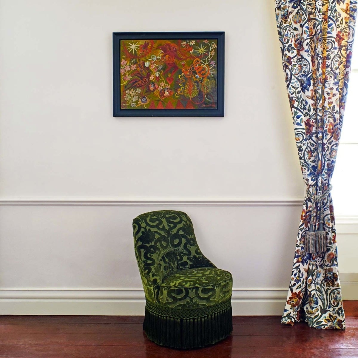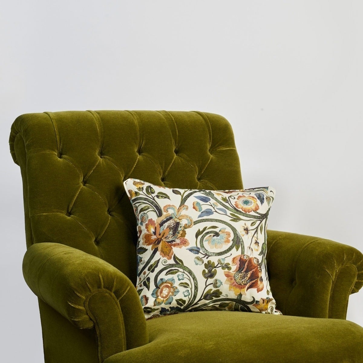 Il motivo del tessuto Gaia Linen rende omaggio alla dea della Terra nella mitologia greca. Su larga scala, i fiori aperti o in boccio e gli uccelli donano un tocco di serenità agli interni. In misto lino, questa creazione celebra la bellezza selvaggia della campagna inglese.
