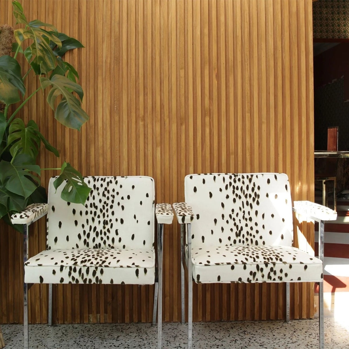 Poodle and Blonde presenta un disegno di animali per il tessuto dalmata del Tottenham. Pois di varie dimensioni e realizzati con pennellate decorano il fondo chiaro di questo tessuto. Ispirata alle macchie del mantello del dalmata, la creazione strizza l'occhio agli appassionati di questa razza canina.