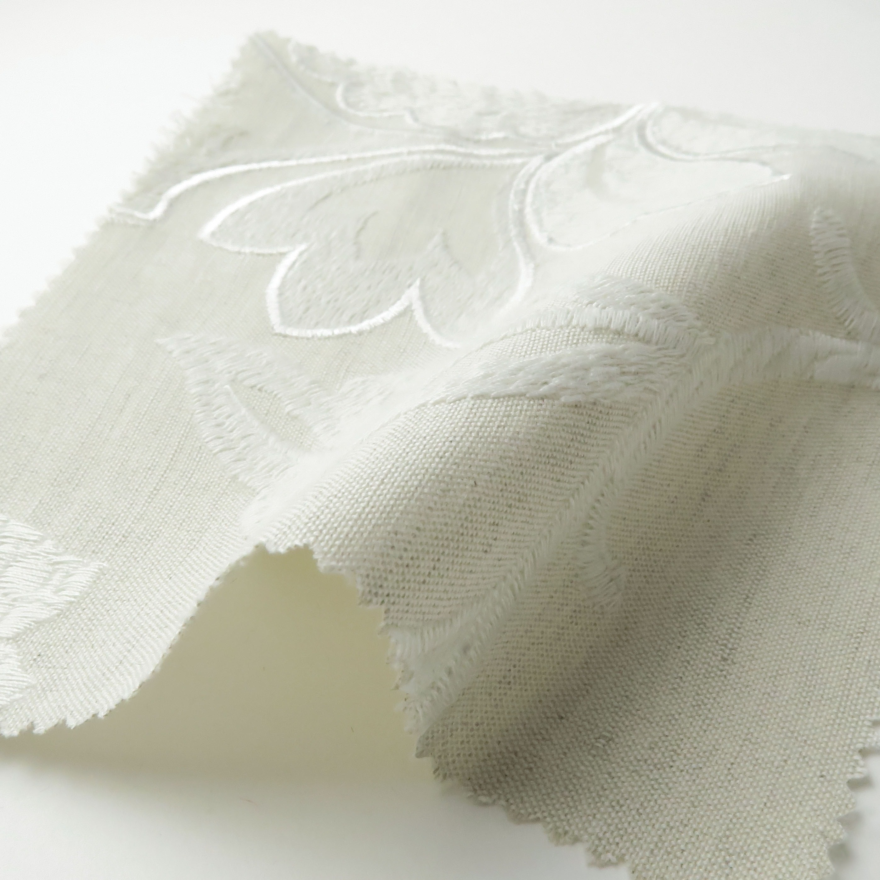 Il tessuto jacquard Samara è disponibile in colori neutri e chiari. Presenta fiori ornamentali dettagliati con foglie e petali curvilinei. Questo design romantico porta eleganza in ogni stanza. Tessuto in misto cotone e lino, questo tessuto offre un tocco morbido.
