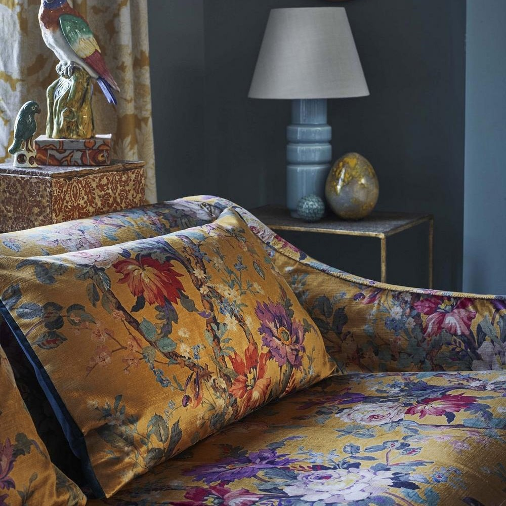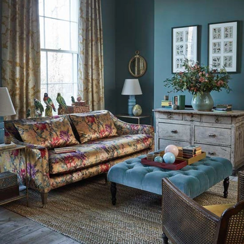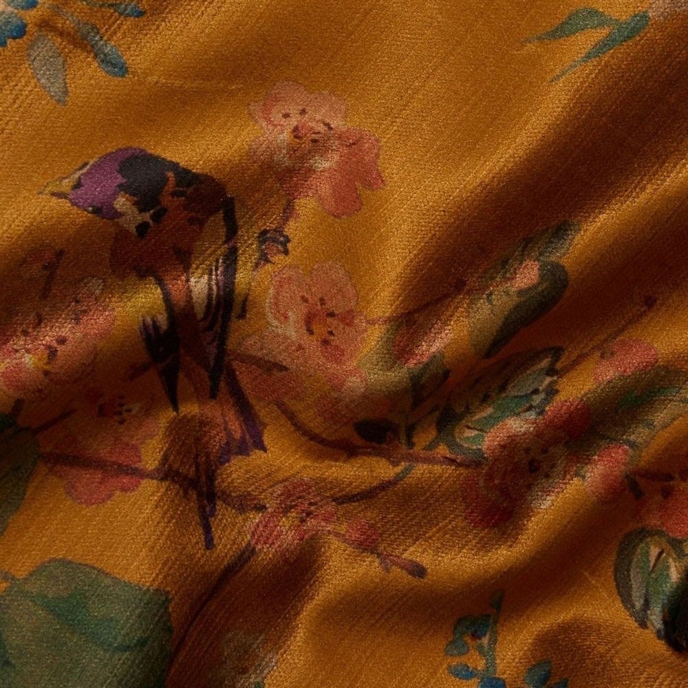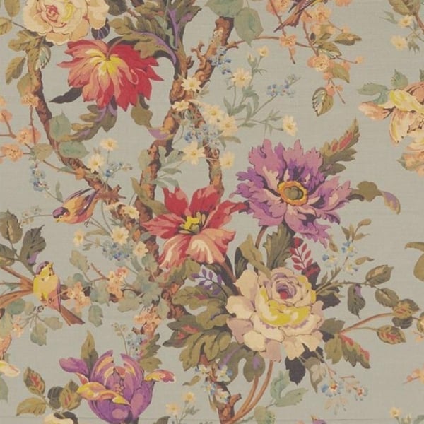 Tratto da un dipinto realizzato tra gli anni '20 e '30, il disegno del velluto Lady Kristina presenta una composizione floreale. In contrasto con uno sfondo semplice, presenta cespugli di rose e rami fioriti su cui sono appollaiati i passeri. Questo tessuto dai colori intensi presenta un sottile gioco di luci che conferisce una nota glamour all'insieme.