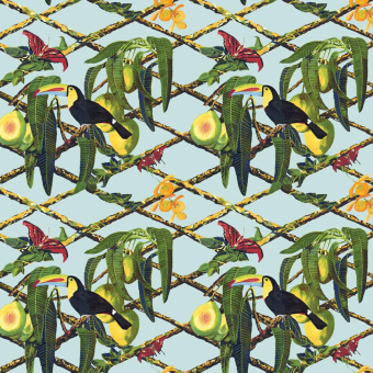 Un'aria tropicale soffia attraverso il tessuto Tucan di Gaston y Daniela. Su un traliccio ricoperto di piante esotiche, tra il fogliame e i frutti si nascondono tucani colorati. Realizzato in una robusta miscela di viscosa e lino, questo tessuto è perfettamente adatto alla realizzazione di sedili e tende.