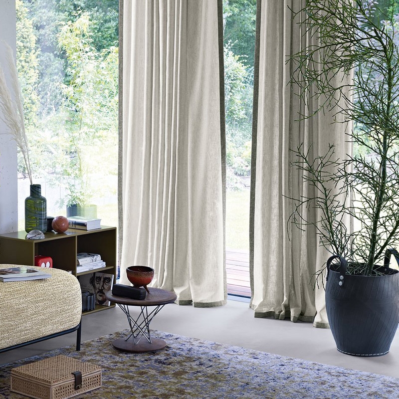 L'armatura a rilievo del tessuto Oxford è composta da una trama con fibre ritorte. Offre un supporto resistente all'uso intensivo. Disponibile in un'ampia gamma di colori caldi, freddi e sobri, questo tessuto di Zimmer + Rhode dona un tocco caldo agli spazi abitativi.