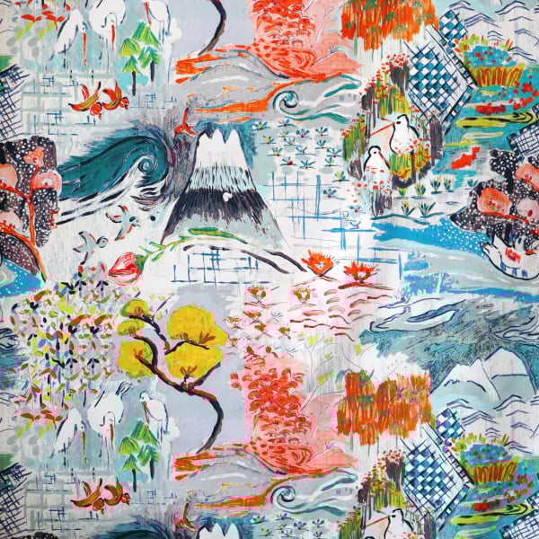 Ispirandosi alle montagne innevate e ai fiori di ciliegio del Giappone, il creatore di Lalie Design immagina un modello vivace e dinamico per Manaka. Come un quaderno di viaggi, raffigura molti elementi della natura asiatica. Invitando alla contemplazione e alla scoperta, questo tessuto in cotone integra una nota poetica negli elementi decorativi.