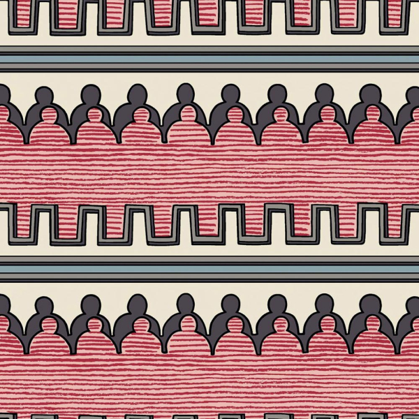 La follia gotica assume un motivo gotico merlato. Luke Edward collabora con Rubelli per proporre questo disegno ispirato a una delle sue passeggiate nel quartiere dei giardini rococò di Painswick in Inghilterra. È lì che il suo sguardo cade sul tetto di un castello fortificato, il disegno nasce allora nella sua mente. Questo tessuto propone quindi una stampa simile ad un fregio, traendo la sua storia da un decoro medievale.