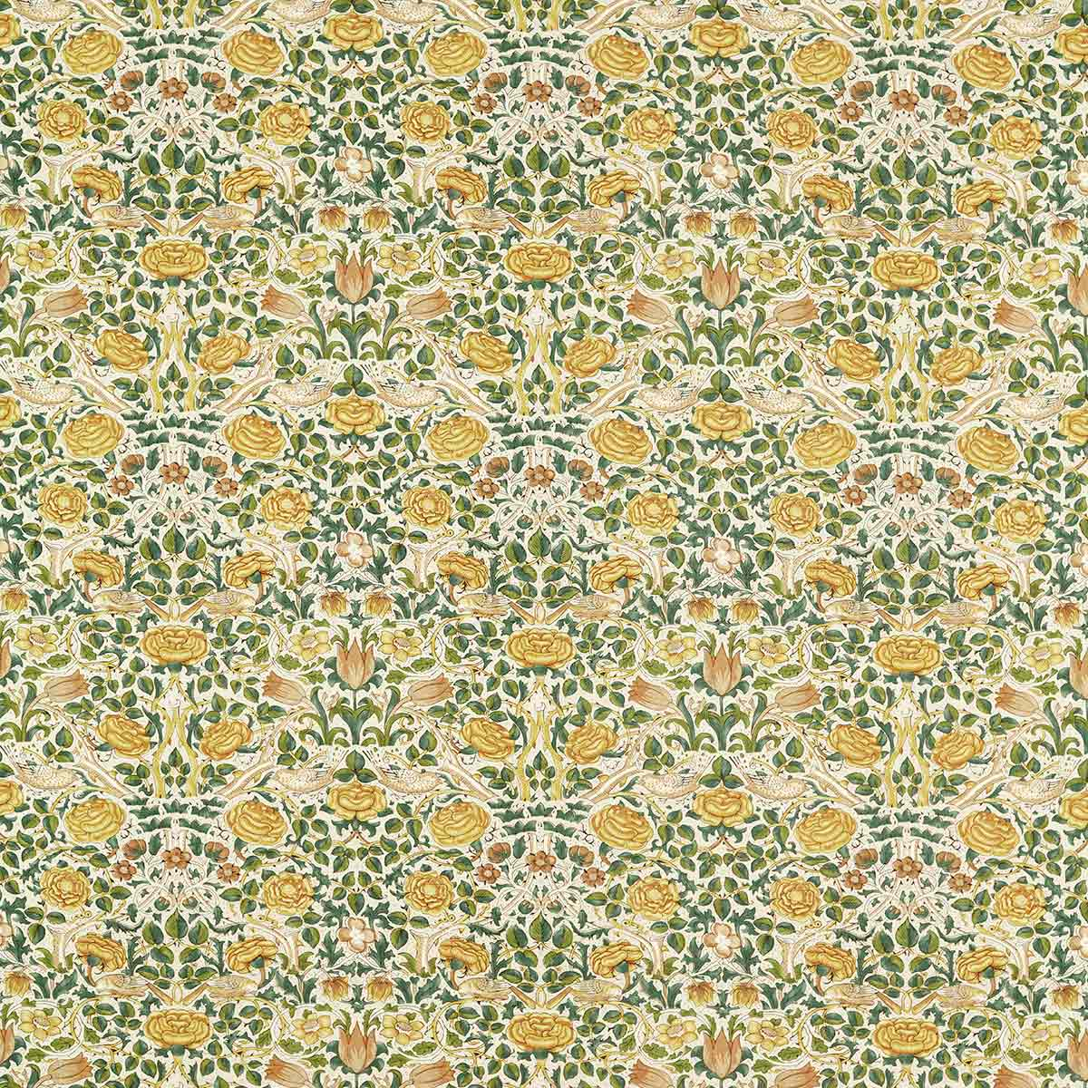 William Morris trae ispirazione dai drammi quotidiani della natura quando crea Rose, un disegno floreale riccamente dettagliato. Sontuose teste di tulipani e rose eretti e spettacolari steli spinosi formano una scena opulenta dai toni caldi. Coppie di uccelli completano questa scena bucolica che adorna questo tessuto in misto lino e cotone. L'editore Morris & Co propone questo modello in colori focosi e profondi.
