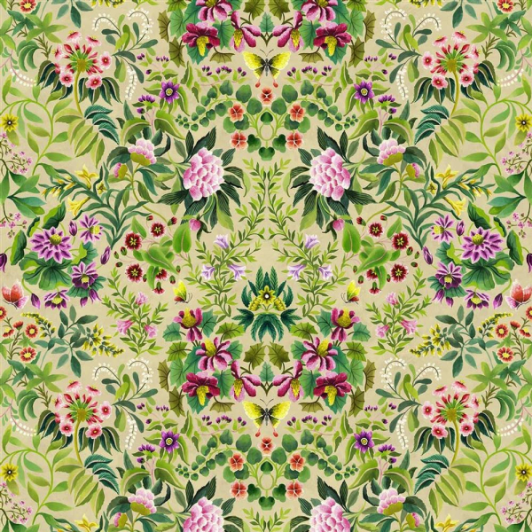 Realizzato interamente in cotone, il tessuto Ikebana Damask presenta un esuberante disegno floreale. Realizzato con sorprendente simmetria, il suo motivo botanico è costituito da fiori, foglie e farfalle. Il tutto forma un classico damasco, esaltato dalla sua colorazione audace e dallo sfondo semplice. Questa creazione di Designers Guild si presenta in toni vivaci, rinfrescando l'atmosfera degli interni.