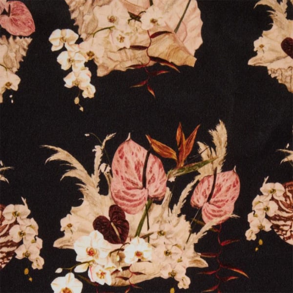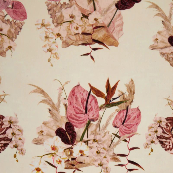Il velluto ecologico Mazzo di Poodle & Blonde è un'opera floreale di squisita bellezza. I suoi fiori esotici, dipinti a mano, sembrano delicatamente collocati in conchiglie immaginarie. Dal fascino arioso, il disegno prende vita su un velluto di cotone dal drappeggio fluido. Come una passeggiata attraverso le stagioni, i colori della primavera e dell'autunno si dispiegano su una base color crema lattiginosa.