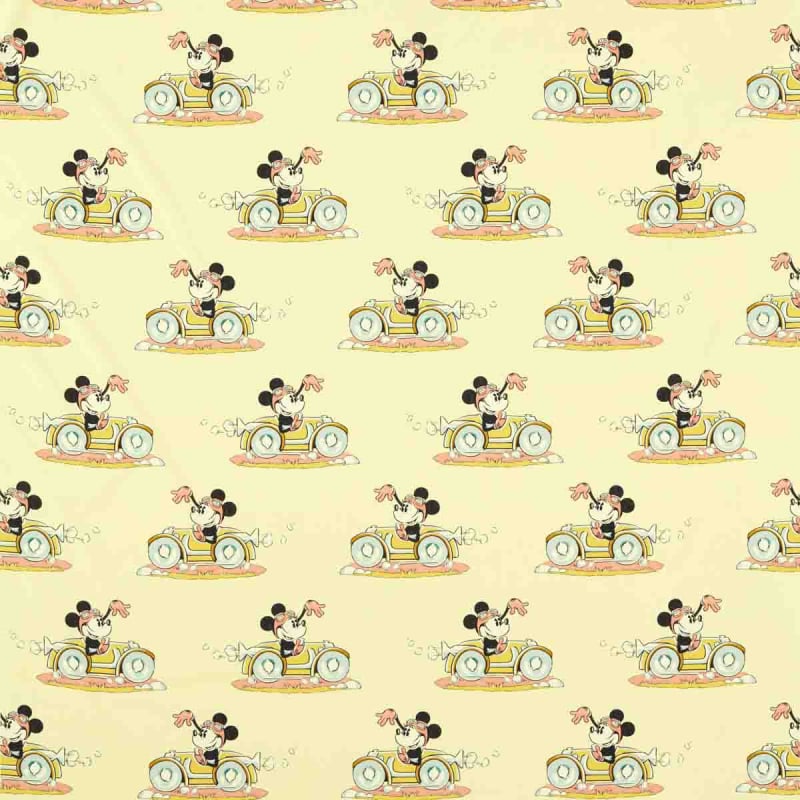Il motivo Minnie in Motion raffigura Minnie Mouse che gira nella sua auto decappottabile. Il tessuto è ispirato a uno splendido adesivo da parete dipinto a mano degli archivi Sanderson. In collaborazione con Disney Home, Minnie, raggiante di gioia e fascino, saluta gli amici che incontra mentre attraversa questa fedele riproduzione.