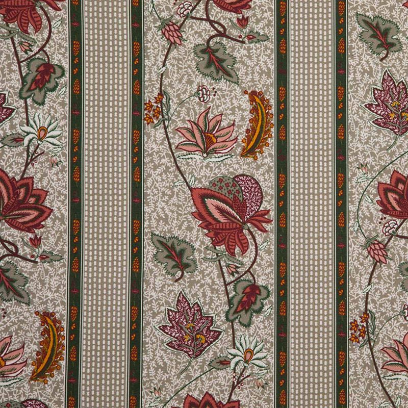 Augustine è un tessuto in cotone di Quenin, caratterizzato da un disegno floreale ispirato ad un archivio. I suoi fiori squisiti si intrecciano con strisce elaborate, evocando decori indiani e infondendo agli spazi un tocco orientale. Le deliberate imperfezioni del design dimostrano un'attenta lavorazione artigianale, celebrando l'autenticità stampata a mano della creazione originale.