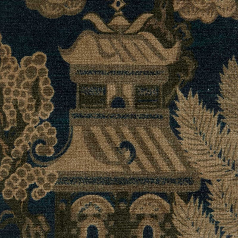 Un paesaggio fantasy meticolosamente realizzato prende vita sul velluto del padiglione galleggiante di Liberty. Isole misteriose con padiglioni e sampan galleggianti si susseguono in questa scena, circondate da giardini lussureggianti e uccelli in volo. Ispirato alle Chinoiserie dei secoli XVII e XVIII, questo design evoca un'aura di meraviglia e raffinatezza. Con un drappeggio sontuoso e una morbidezza squisita, questo velluto offre una sensazione tattile indulgente.