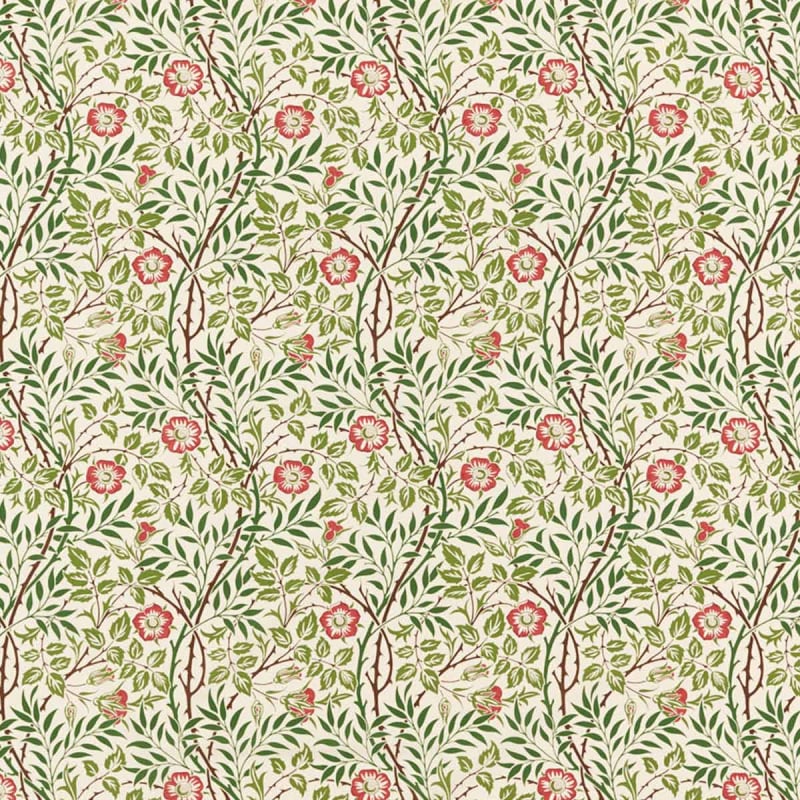 Con il tessuto di cotone Sweet Briar, Morris & Co riprende un motivo disegnato da Henry Dearle nel 1912. Le figure illustrano una rosa di erica che cresce allo stato selvatico, riprodotta in una nuova tavolozza. I fiori, delicatamente tinti di pastello, infondono gli spazi con la loro morbidezza. Sono protetti da steli spinosi, che si snodano con grazia per tutta l'altezza del tessuto.