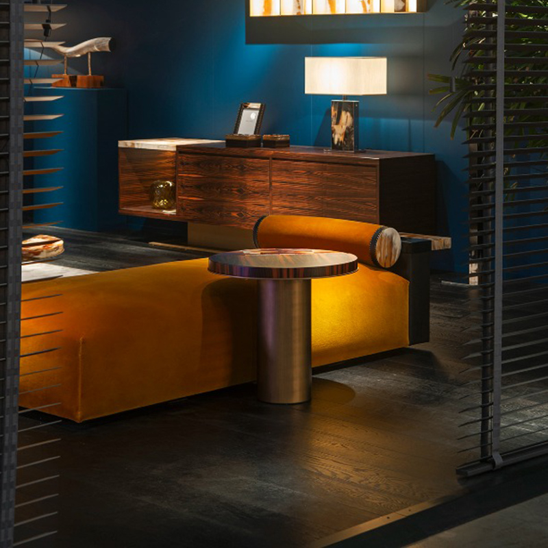 Il velluto Monsieur Baudelaire allude a "La Chevelure", un poema iconico del famoso poeta da cui prende il nome. Dedar propone qui una doppia armatura tanto flessibile quanto robusta, composta essenzialmente da cotone e modal. Queste fibre assorbenti, di colore intenso, sono tagliate in alto sulla superficie per formare un vero e proprio vello. L'insieme gioca sul volume e sulla densità, immergendo l'atmosfera in una profondità inebriante.