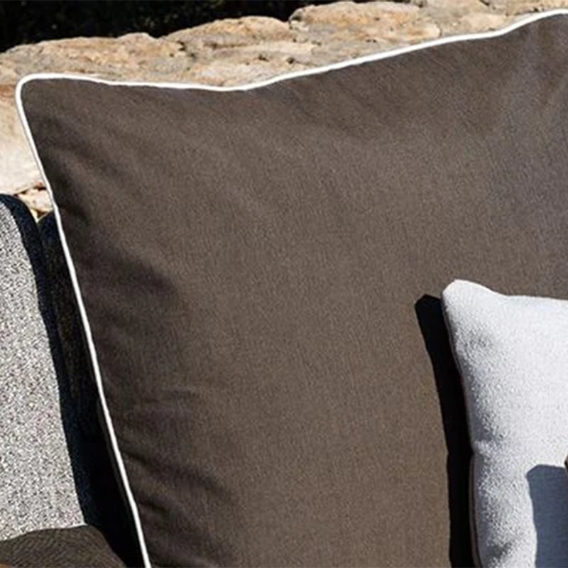 Cliff Outdoor, un jacquard di Sunbrella, sorprende per la sua morbidezza al tatto e la sua qualità traspirante. Questo tessuto si distingue anche per la sua resistenza alle macchie, alla muffa, ai raggi UV e alle intemperie. La combinazione delle sue sfumature neutre dà vita a un effetto mélange che completa l'arredamento con raffinatezza e sobrietà.