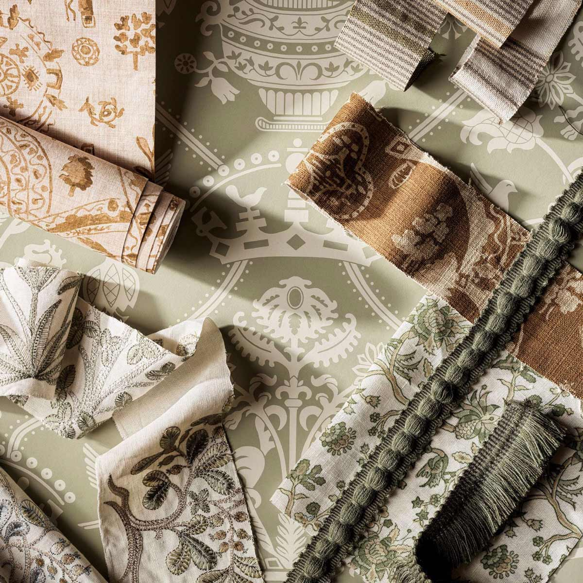 Il tessuto Topiary View presenta un motivo architettonico stilizzato, in cui si organizza un giardino decorativo abbozzato dall'alto. Sentieri tortuosi, siepi scolpite e percorsi vegetali compongono una mappa silenziosa, caratterizzata da calma e rigore. Il cotone e la canapa fungono da sfondo naturale per un tessuto strutturato e fantasioso. Sanderson suggerisce una visione del paesaggio al tempo stesso ordinata e poetica.