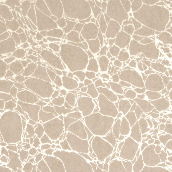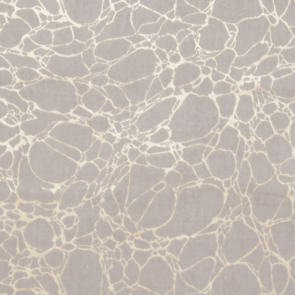 Velvet Marble è un tessuto, firmato Fischbacher, attraversato da un motivo astratto ispirato alle strutture naturali. Linee sinuose disegnano una trama frammentata, come una superficie di pietra frammentata. Ogni contorno sembra fluire sullo sfondo uniforme in una coreografia silenziosa. L'insieme dà un'impressione di movimento congelato in un materiale morbido e minerale.