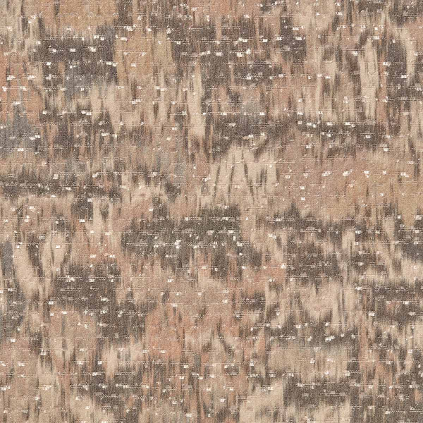 Sitara è un tessuto con motivo testurizzato di Fischbacher, in cui il ricamo a mano traccia una costellazione irregolare di fili metallici. Si distinguono linee verticali sfocate, quasi sbiadite, che evocano il movimento del legno o le vibrazioni di un tessuto antico. Piccoli tocchi chiari, simili a punti di cucitura, punteggiano l'insieme e aggiungono rilievo. Il risultato complessivo oscilla tra l'organico e l'astratto, con un'estetica artigianale molto marcata.