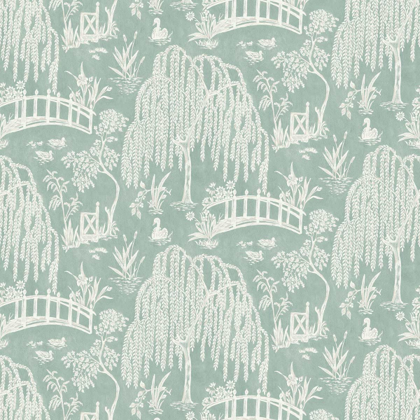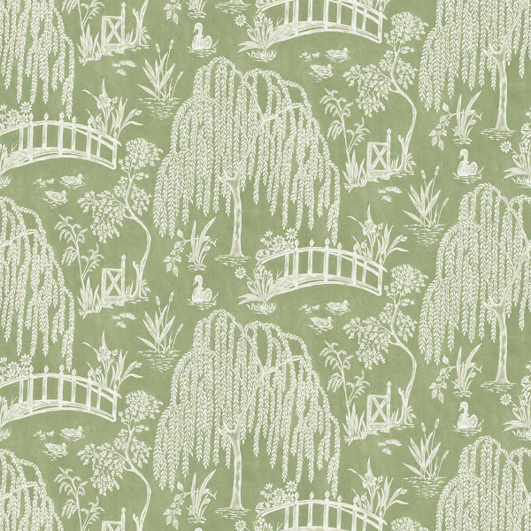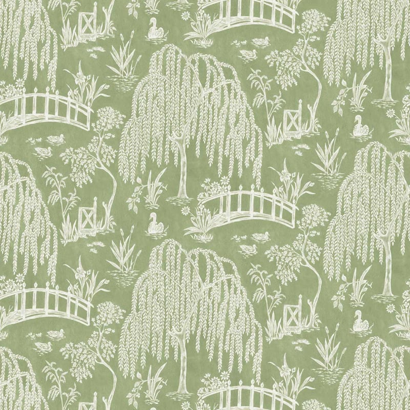 Immaginato da Nina Campbell, il tessuto Les Saules è decorato con un motivo bucolico. Ponti ad arco attraversano fiumi tranquilli, circondati da salici piangenti e piante lussureggianti. I cigni scivolano lentamente tra le foglie, aggiungendo dolcezza alla scena. Ogni elemento sembra congelato in un momento di calma e armonia.