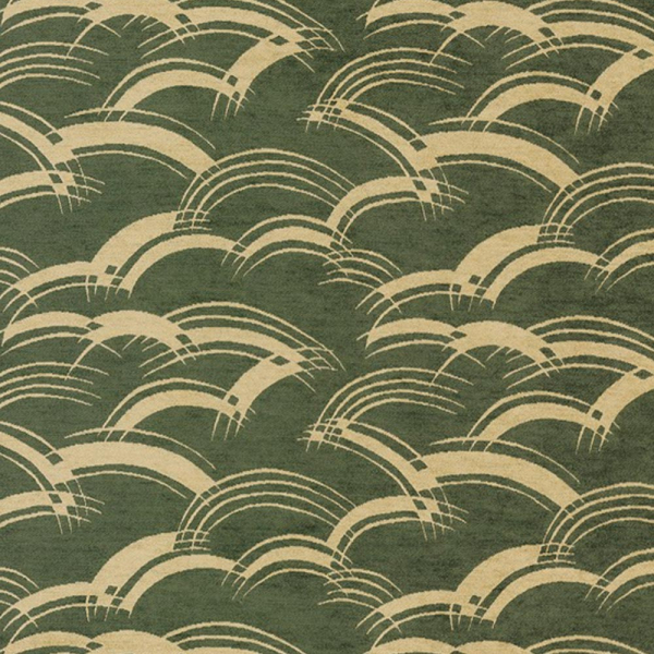 Sul tessuto Velours Ike, gli archi si intersecano e si sovrappongono in un ritmo controllato. Il motivo, ripetuto con regolarità, evoca onde stilizzate o correnti d'aria in movimento. Le forme si susseguono con fluidità in una struttura quasi coreografica. La superficie rivela una ricca trama visiva, che rafforza la dinamica del disegno. Nobilis traduce qui un'estetica contemporanea, tra tensione e leggerezza.