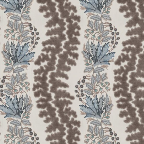Il tessuto Rambling Vine declina un motivo vegetale in cui si intrecciano foglie stilizzate e onde organiche. Come ricamati, i grandi bouquet si alzano mentre i contorni sfocati conferiscono una dinamica morbida e in movimento. L'insieme gioca sull'alternanza tra precisione del tratto e fluidità del gesto. Questo tessuto firmato Zimmer + Rohde rivela una sensibilità grafica caratterizzata da dolcezza.