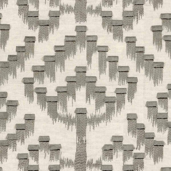 Ispirato alle cascate del Giappone, Akame disegna un motivo geometrico ricamato con l'aspetto di una cascata stilizzata. Le forme a gradini scandiscono la superficie del tessuto, come un'eco minerale dell'acqua che scorre. La base naturale in cotone e lino rafforza l'effetto del materiale e della profondità. Da Casamance, il ricamo diventa linguaggio, scolpendo ogni linea con rigore e poesia.
