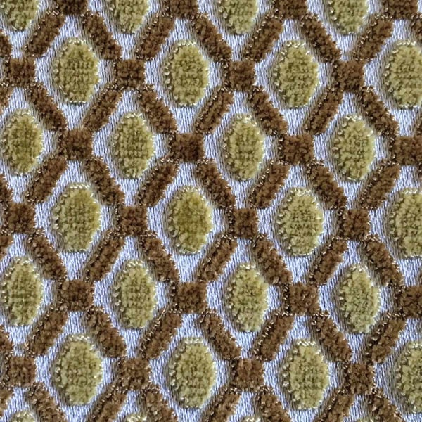 Il velluto Montréal presenta un motivo geometrico formato da rombi intrecciati, dall'aspetto regolare. Questo tessuto, proposto da Antoine d'Albiousse, affascina per il sottile rilievo delle sue figure, simili a squame raffinate. La ripetizione delle forme ordinate crea una superficie grafica in cui ogni riflesso fa vibrare la materia. Questo tessuto prende vita nello spessore della sua trama, che gli conferisce una presenza avvolgente.