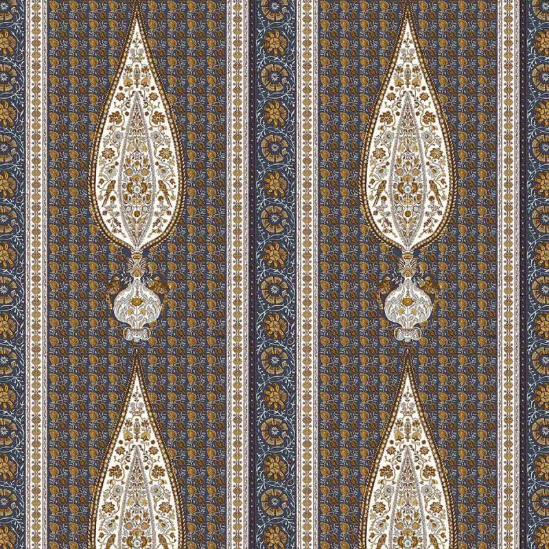 Il tessuto Indira rivela un motivo etnico, scandito da gocce e fregi intrecciati, ispirato a disegni orientali classici. Firmato Gastón y Daniela, questo tessuto ha una presenza visiva forte e strutturata. Le linee verticali accentuano l'effetto di movimento e profondità nella composizione. Ogni dettaglio testimonia un preciso senso dell'ornamento.