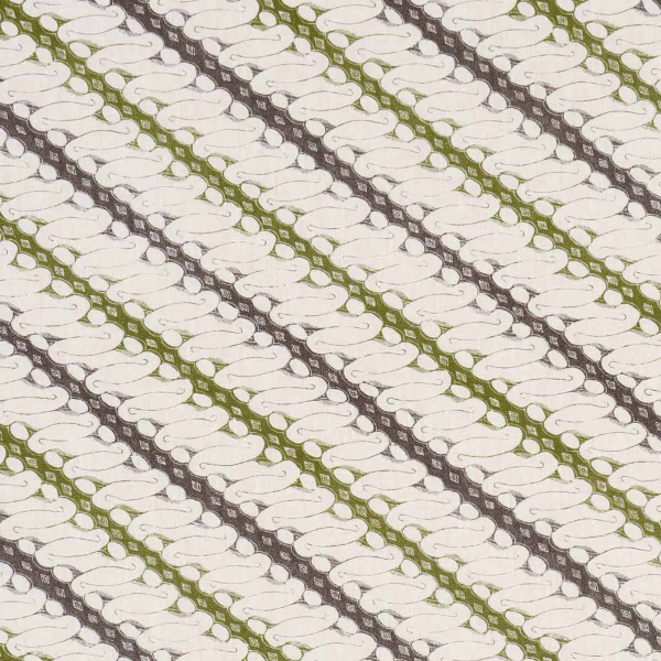 Il tessuto Ronnie di Schumacher evoca uno spirito libero attraverso un motivo geometrico obliquo ispirato agli antichi batik. Le righe oblique tracciano linee leggermente ondulate, come animate da un gesto fluido, vicino alla mano. La trama naturale del lino accentua la sottile irregolarità della stampa. Questa tela rende omaggio al know-how grafico del passato.