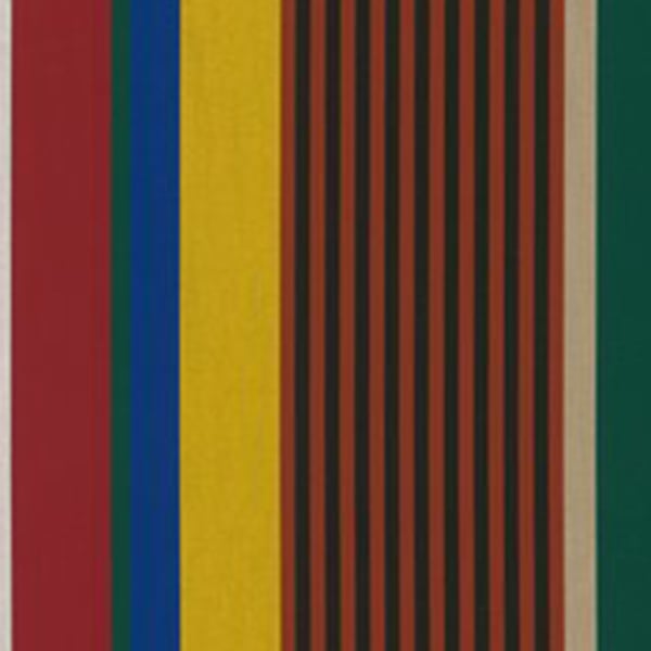 Étamine firma il tessuto Bain de soleil, caratterizzato da un motivo geometrico a righe. Ampie strisce si dispiegano, scandite da linee più sottili che creano un ritmo regolare. Questa struttura grafica afferma con chiarezza la verticalità. L'insieme fa rivivere il fascino ovattato dei grandi hotel balneari di un tempo, tra terrazze ombreggiate e cabine allineate di fronte al mare.
