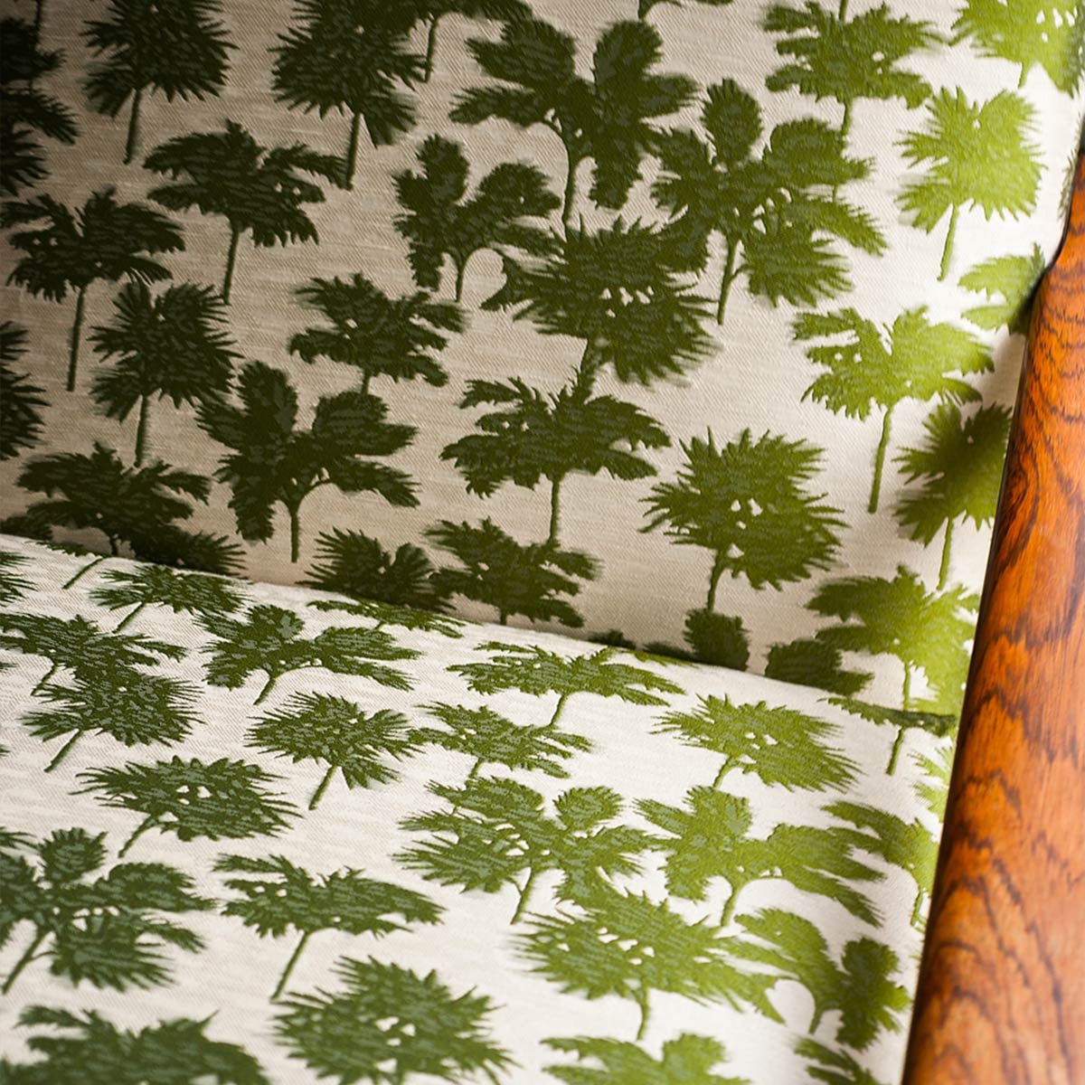Le tissu Be Bop A Lula de Dedar éveille les intérieurs avec la vivacité de son motif palmier tissé en jacquard. Les figures, inspirées des imprimés des chemises hawaïennes, apportent une ambiance exotique et décontractée. Leur couleur intense monochrome se démarque du fond clair pour créer un effet de contraste énergisant.