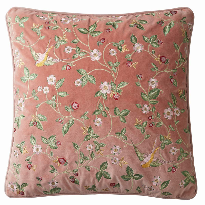 Le coussin Fraise des bois présente une multitude de fleurs printanières délicatement brodées. Inspiré d'un jardin anglais en été, ce motif évoque une atmosphère paisible grâce à ses couleurs douces. Des oiseaux aux plumes délicates voltigent ici et là, complétant ainsi le tableau. Garnie de duvet et ornée d'un passepoil, cette création de Clarke & Clarke offre confort et douceur.