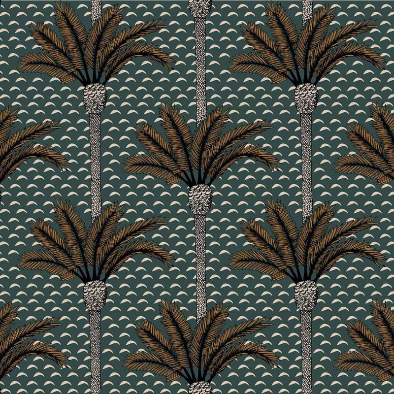 Le papier peint Atlas de Casamance est orné de palmiers aux teintes naturelles. Ces végétaux contrastent avec un fond bicolore de petites vagues lumineuses. Ce motif floral vibrant apporte une touche d'exotisme aux espaces de vie.