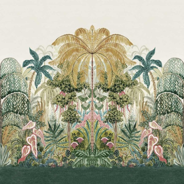 Le papier peint panoramique Mombasa rend hommage à la végétation luxuriante au nord de la ville côtière du même nom, au Kenya. Cette zone, autrefois désertée et polluée par une cimenterie, abrite aujourd'hui une jungle de palmiers et d'arbres indigènes. Clarke & Clarke vous invite à habiller vos murs de cette image verdoyante, magnifiquement traduite par Breegan Jane.