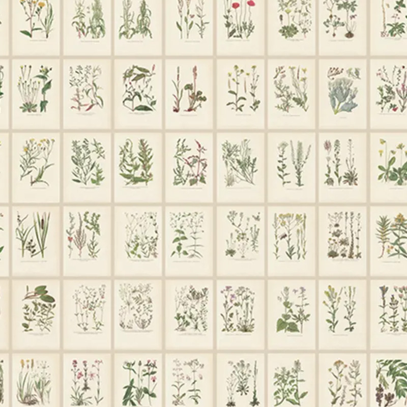 Sandberg's Botanica wallpaper features an illustrative botanical motif inspired by the naturalist plates of yesteryear. A multitude of hand-drawn plants find their place in an orderly composition. The stems, leaves, and blooms capture the eye like a carefully preserved herbarium. Every detail retains the authenticity of the original sketch.